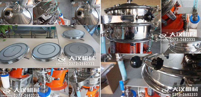 氣體保護(hù)超聲波振動(dòng)篩是旋振篩和超聲波振動(dòng)篩的一種衍生產(chǎn)品,將超聲波控制器與旋振篩有機(jī)結(jié)合在一起,在大漢機(jī)械多年的研究生產(chǎn)的DH系列旋振篩的基礎(chǔ)上,在篩網(wǎng)上面疊加一個(gè)高頻率低振幅的超聲振動(dòng)波,超微細(xì)粉體接受巨大的超聲加速度,使篩面上的物料始終保持懸浮狀態(tài),從而抑制粘附、摩擦、平降、楔入等堵網(wǎng)因素,從而解決了強(qiáng)吸附性、易團(tuán)聚、高靜電、高精細(xì)、高密度、輕比重等篩分難題,使超微細(xì)粉篩分不再成為難事,特別適合高品質(zhì)、精細(xì)粉體的用戶使用。